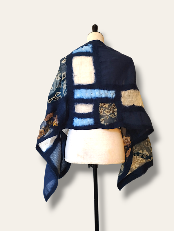 Etole légere en patchwork de soie,voile de coton, mousseline de soie et laine Mérinos.